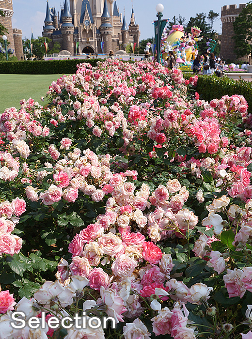 昨日両パークに行くと、そこらじゅうディズニーローズや他の種のローズが