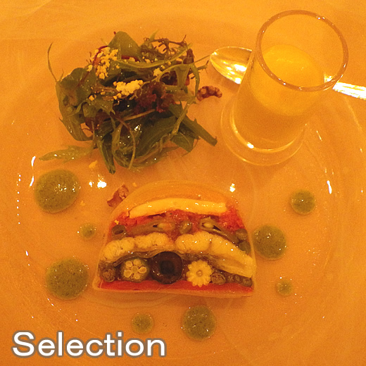 鰻と春野菜のテリーヌ・サフランのエスプーマ添え