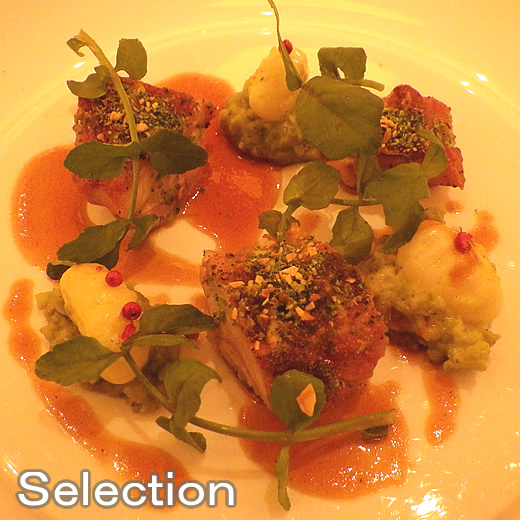 大山鶏モモ肉の香草パン粉焼き・バジル風味の蚕豆のニョッキ添え