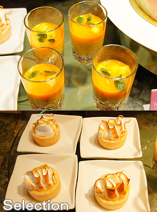 バナナキャラメリーゼとマンゴムース(上)レモンメレンゲパイ(下)