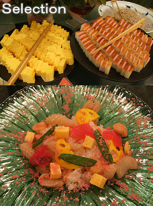 厚焼き玉子&二色のかまぼこ(上)ちらし寿司(下)