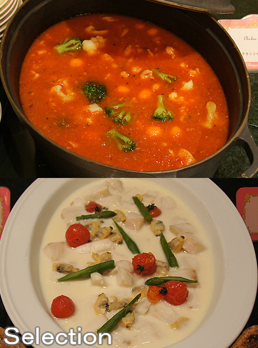 チキンシチュー(上)白身魚のスチーム・クラムクリームソース(下)