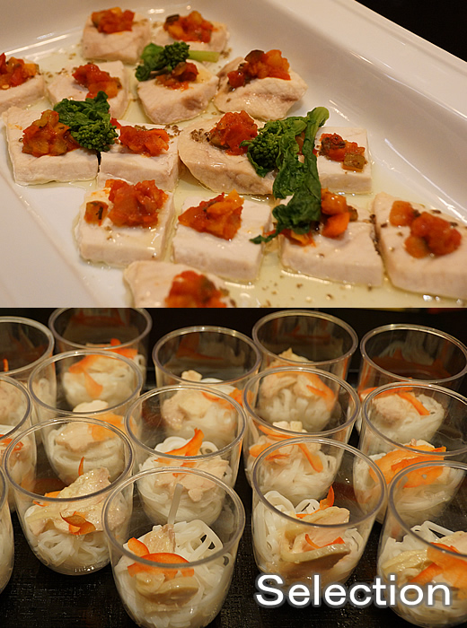 白身魚のローストプロバンス風(上) 蒸しチキンフォー(下)