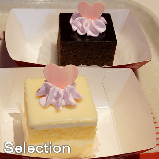 手前からホワイトチョコレートケーキはしっとりしったんですが、