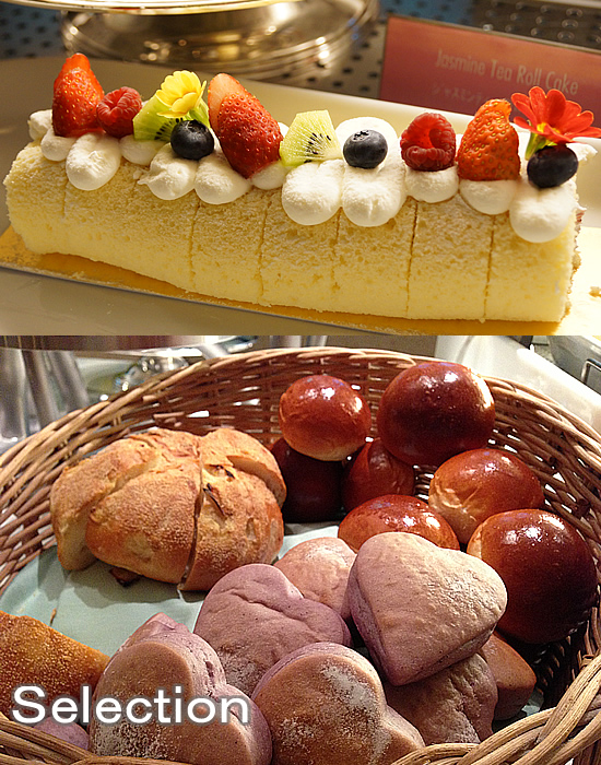 ジャスミンティーのロールケーキ(上) パン各種(下)