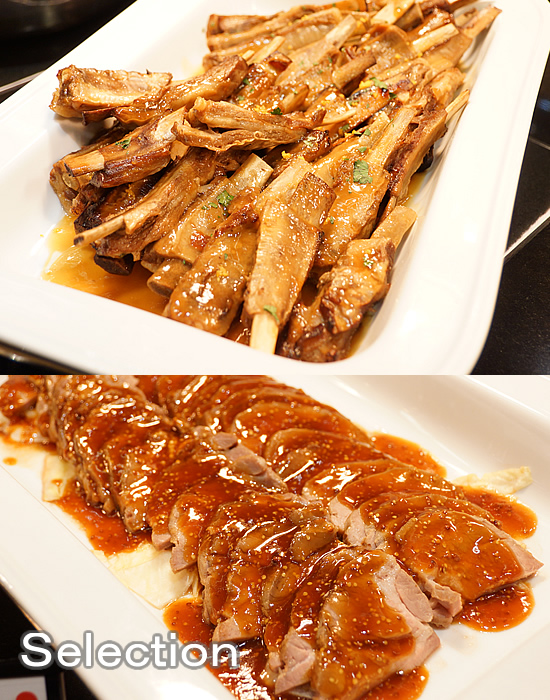ラムスペアリブのトロピカルバーベキューソース(上)ローストポークマスタードソース(下)