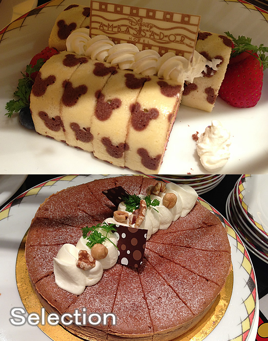 三色ムースのロールケーキ(上) チョコレートスフレ(下)