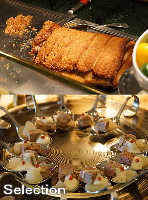 ローストポーク胡椒と味噌の付け焼き(上) ミートローフ?(下)