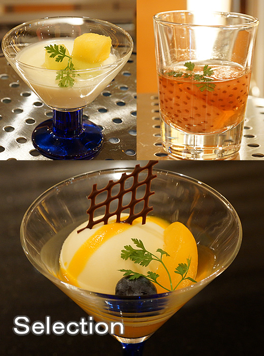 上左からパンナコッタ・苺のコンポート・ホワイトチョコムース(下)