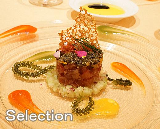 マグロの柚子胡椒マリネとキャロットとトンブリのサラダ仕立て