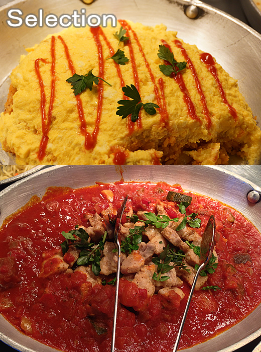ローストチキン入りオムライス(上) ポークの香味野菜ソース(下)