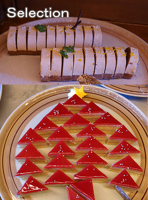 ジンジャーチョコレートとレモンソース(上)ピスタチオムースとシャンパーニュー(下)