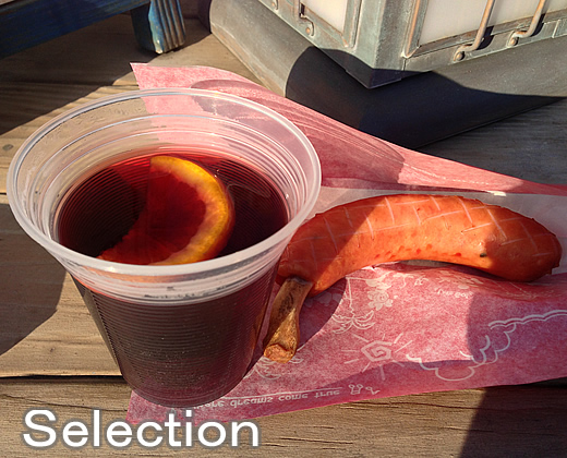 スライスオレンジ入りホットワイン&骨付きソーセージ