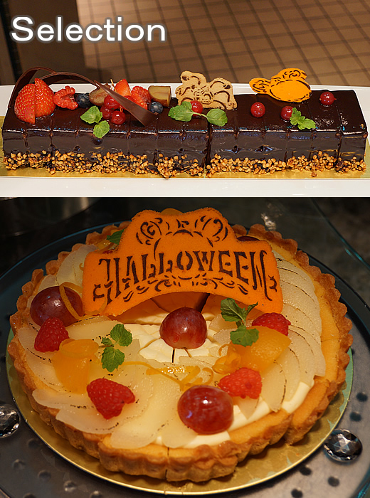 プラリネとチョコレートのムース(上) 洋梨のタルト(下)