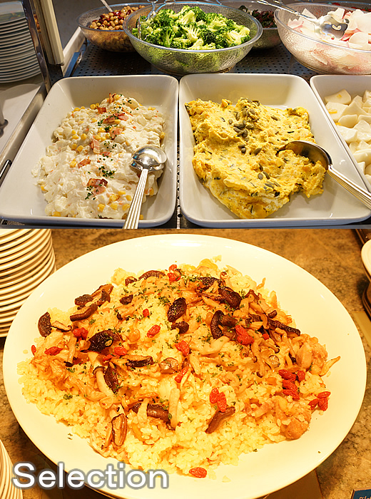 ポテトサラダ(左上) パンプキンサラダ(右上) 栗とキノコのピラフ(下)