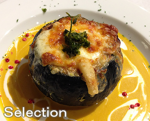 坊ちゃんかぼちゃのマカロニグラタン スープ仕立て
