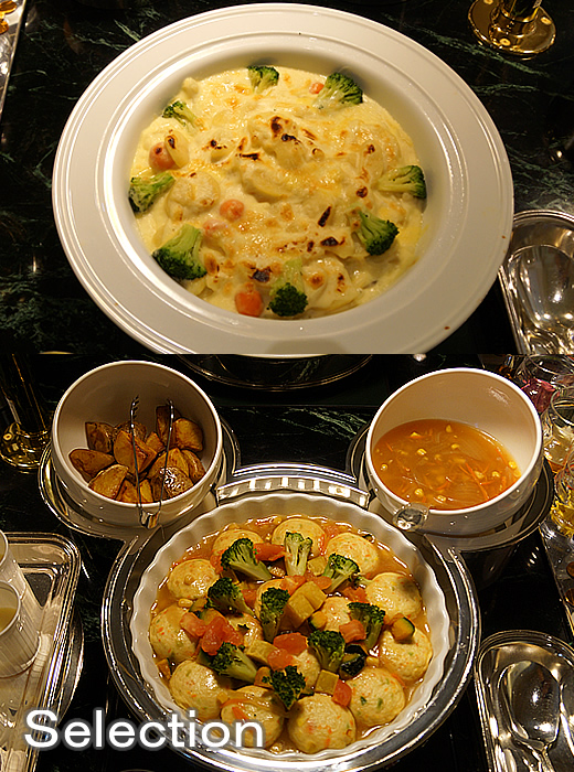 野菜のグラタン(上) 豆腐ハンバーグ野菜の中華風ソース(下)