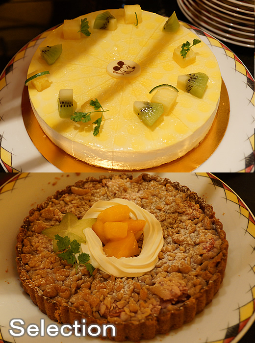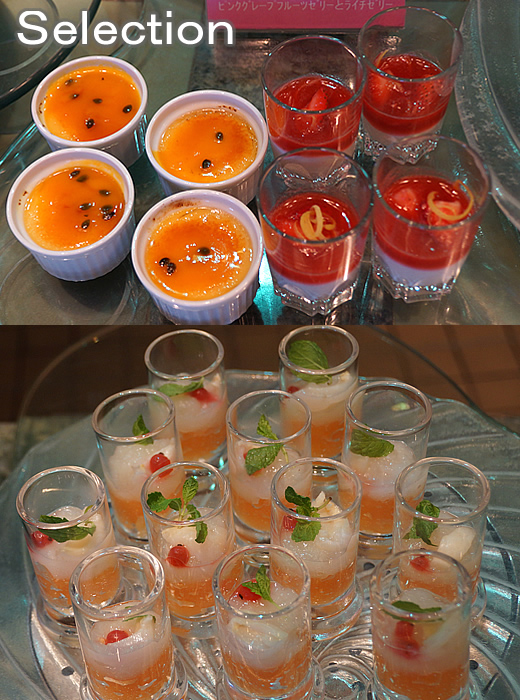 ココナッツムースとパッションフルーツゼリー(上) トロピカルフルーツタルト(下)