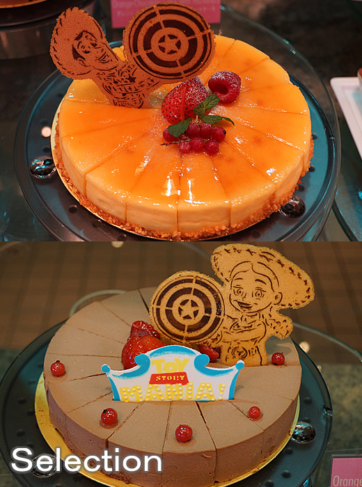 ベイクドチーズケーキ(上) オレンジとヘーゼルナッツのチョコレートケーキ(下)