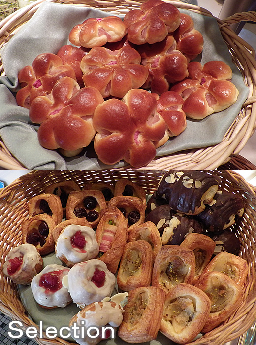 桜あんパン(上) フルーツ添えディニッシュ(下)