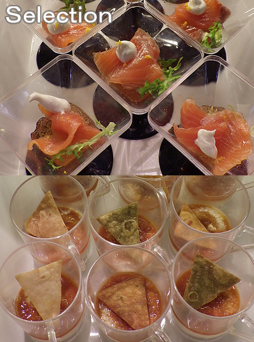 サーモンマリネ・レフォールクリーム添え(上) マカダミアンナッツと豆乳のピュレ(下)