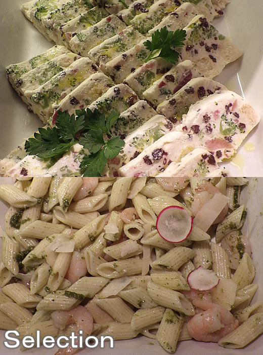 クリームチーズのテリーヌ(上) パスタサラダ・バジルソース(下)