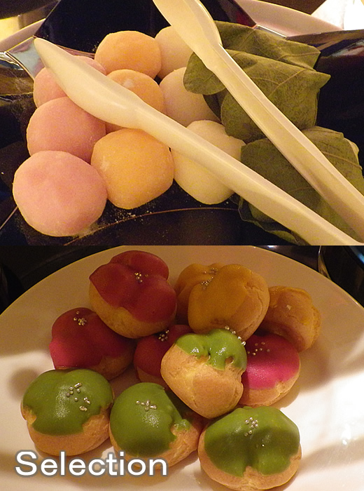 和菓子クリーム大福と柏餅(上) エッグシュー(下)