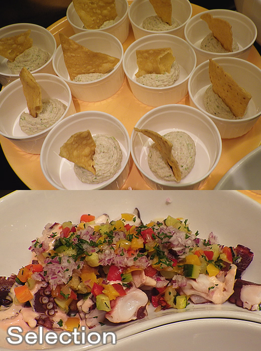 ハム・ムース(上) タコのマリネ・オーロラソース(下)