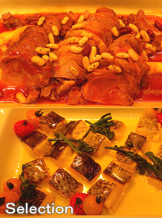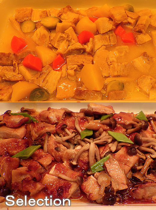ポークと季節野菜のポトフ風(上) ローストチキン・テリヤキソース(下)