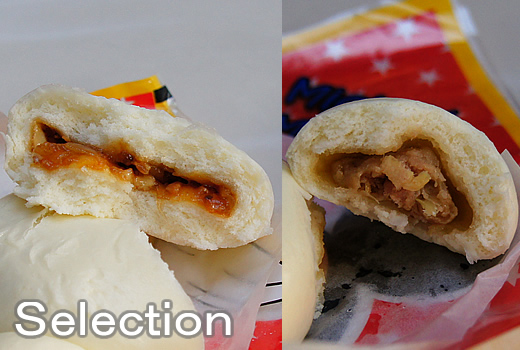 ミッキーまんの中身は顔がてりやきチキン(左側)耳がポーク(右側)