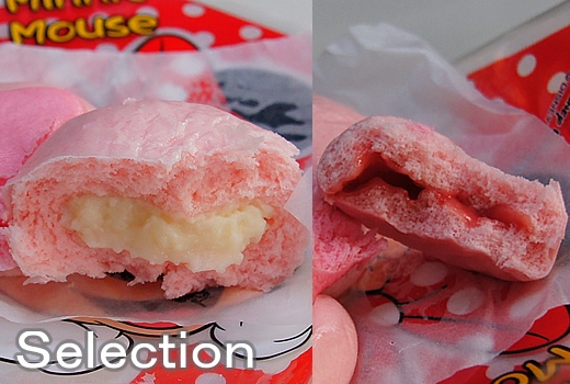 そしてミニーまんの中身は顔がミルクカスタード?(左側)耳がストロベリークリーム?(右側)